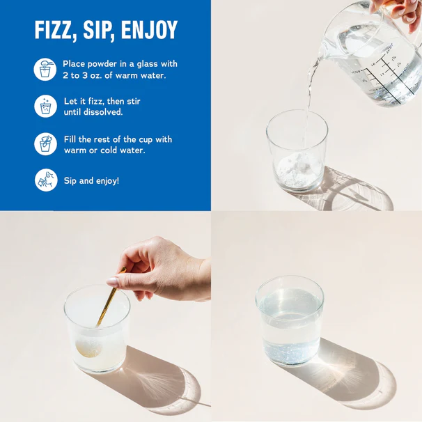 • Bebida efervescente y portátil: mezcla el sobre con agua tibia, observa cómo burbujea y disfruta de su sabor a frambuesa limón en cualquier lugar.